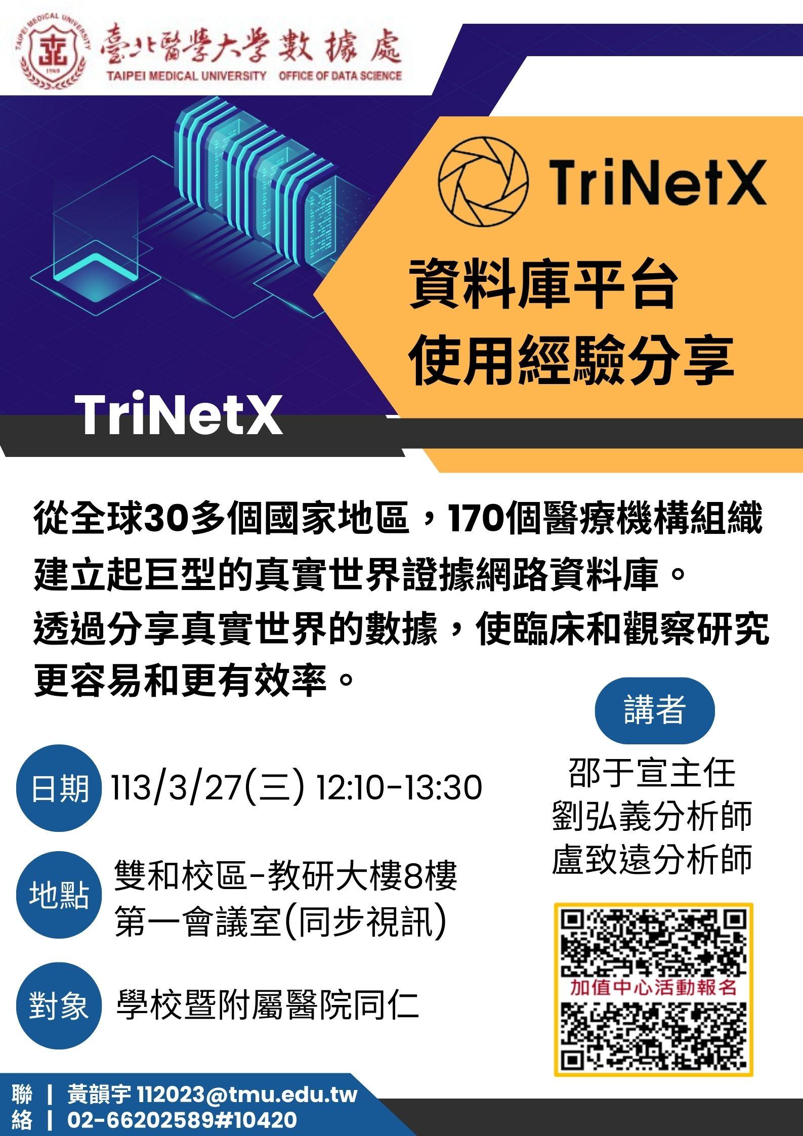 【數據處學術月會】113/3/27-TriNetX資料庫使用經驗分享